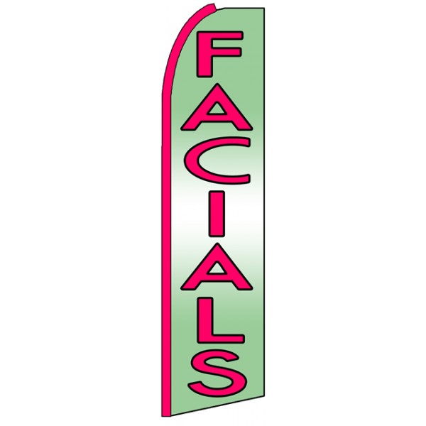 Facials advertising feather flag. Price is for replacement flag only. Aluminum pole and base required.