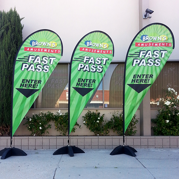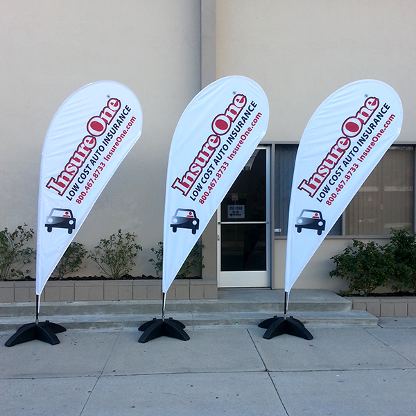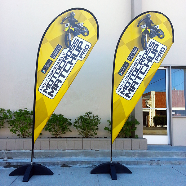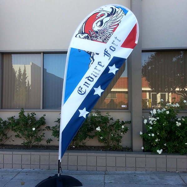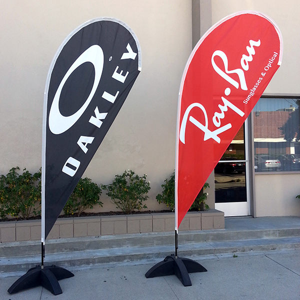 This is a great selection for customers who are looking to purchase a custom advertising feather flag but they have limited space. These wide feather signs are perfect for outdoor businesses as well as indoor use in trade shows, indoor events, convention center occasions. Our top of the line materials and inks are being used to create vibrant and attractive marketing displays in every shape and size you have in mind. Advertising teardrop flags are excellent selections for logo only flags and a small message to attract attention of potential buyers driving by or just walking.